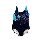レディース水着 スポーツタイプ ワンピース 補正パワーネット 昇華プリント Sサイズ ブルー 送料250円