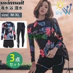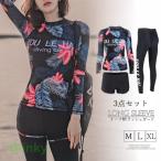 フィットネス水着 レディース 3点セット 総柄 レギンス 長袖 ラッシュパーカー 体型カバー 競泳水着 練習用 旅行 めくれ防止 着脱しやすい