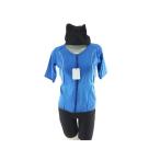 レディース水着 3点セット フィットネス 半袖 キャップ付き 補正 パワーネット 体型カバー 大きいサイズ 6L ブルー系