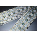 拾11348RM 女性袴下帯 シルク化繊西陣織К灰色と金の桧垣市松に花菱文様 全通 新品別誂え