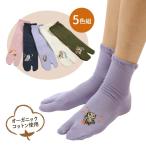 ふくろう柄 綿 コットン レディース 靴下 ソックス 足袋タイプ ゆったり口ゴム 梟 日本製 敬老の日 母の日 オーガニックコットンフクロウ柄足袋ソックス5色組