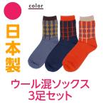 靴下 ソックス レディース 3足組 日本製 ウール混クルーソックス チェック柄 暖か 秋 冬 送料無料