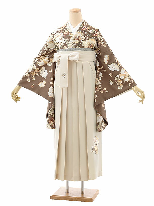 卒業式袴レンタルA223 モカ 洋柄×ベージュ袴 卒業式 袴 レンタル 女性 卒業式袴 フルセットレンタル 大学生 はかま 大学 袴セット 卒業袴レンタル 着物レンタル 卒業式袴レンタル 往復送料無料 新品足袋プレゼント【レンタル】