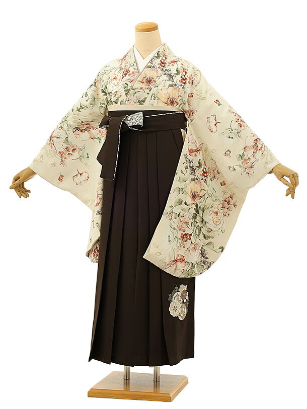 卒業式 袴 レンタル 女 女性 レンタル 卒業袴レンタル h1174 クリーム水彩花柄×こげ茶袴 卒業式袴セット 着物 レンタル 二尺袖 着物 袴 フルセット 女性 大人 大学生 専門学生 卒業式 謝恩会 新品足袋プレゼント 往復送料無料【レンタル】