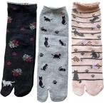 足袋 ソックス レディース 夏 薄手 綿混 猫柄 可愛い たび 靴下 ネコ柄 口ゴム ゆったり 3足セット 柄お任せ(マルチカラー)