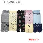 足袋ソックス 5足セット メッシュ編み 猫柄 蒸れない 涼しい くるぶし丈 靴下 レディース