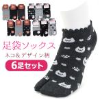 足袋ソックス レディース ネコ柄 ベーシック柄 ショート丈 6足セット 23-25cm 女性 かわいい 2本指 靴下 ショート ソックス 大人 おしゃれ 猫 メール便送料無料