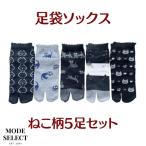 足袋ソックス 【5足セット】 猫柄 口ゴムゆったり クルー丈 靴下レディース