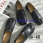 おしゃれ 足袋 シューズ レディース フラット ぺたんこ ローファー 黒 無地 PU レザー レースアップ 光沢 ペタンコ靴 ローヒール トレンド カジュアル
