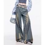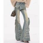 ジーンズ デニム デニムパンツ 韓国ファッション リボンデザインレイヤードフレアデニムパンツ レディース