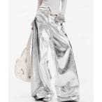ジーンズ デニム デニムパンツ 韓国ファッション メタリックワイドパンツ レディース メンズ