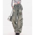 ジーンズ デニム デニムパンツ 韓国ファッション ダブルウエストカーゴデニムパンツ レディース メンズ