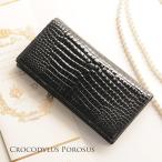 [5%offクーポン]スモールクロコダイル 長財布 マット 加工 ラウンド ファスナー センター取り 一枚革 ポロサス レディース (No.06000795) 保証書 付き 金運