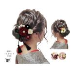髪飾り 成人式 花 2点セット 振袖 卒業式 袴 金色 ベージュ 赤 レッド 椿 紫陽花 かすみ草 コサージュ 日本製 水引 玉飾り