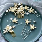 髪飾り 4点セット かんざし 簪 ヘアコーム ヘアピン 花 ボタニカル ゴールド 和装 洋装 結婚式 着物 成人式 卒業式 フォーマル ヘアアクセサリー 髪留め