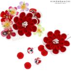 七五三 髪飾り 7歳 つまみ細工 髪飾り2点セット「赤色 つまみ細工 お花 、玉飾り」 女の子の髪飾り No.30015<H>