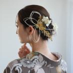 【ご愛顧感謝デー限定 クーポンで10%OFF!】髪飾り 卒業袴 振袖に エレガント&華やか 大ボリューム ゴールド系 花かざり 4点セット 和装 洋装 和洋兼用 コームタイプ コサージュ ヘアアクセサリー 洋風 ピンポンマム プリザーブドフラワー グレー ベージュ ブラック ホワイト