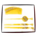 本格簪(かんざし)セット 6点セット 花魁 黄色 イエロー 菊 梅 花 扇 末広 前櫛 笄 前挿し 芳丁 吉丁 舞妓 珍品 髪飾り 成人式 振袖向け 日本製 送料無料