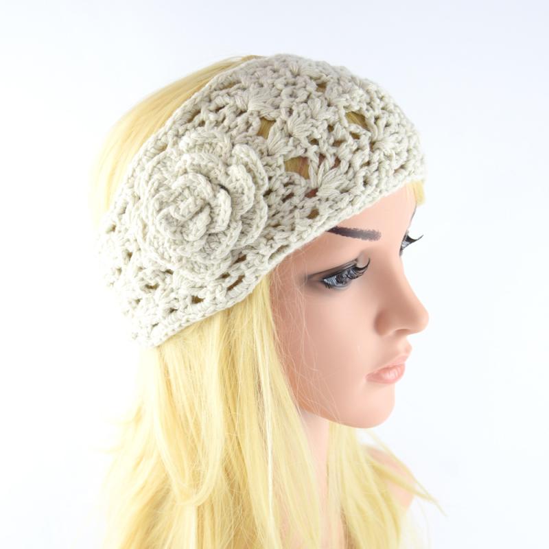 ヘアバンド レディース あったか 保温 耳当て付き 透かし編み 花柄 フラワーモチーフ ニット 手編み かわいい 欧米風 髪飾り 秋冬 ベージュ おしゃれ カジュアル(x500)