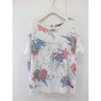 ◇ 55DSL 総柄 バックジップ 半袖 Tシャツ カットソー サイズM オフホワイト系 マルチ レディース P