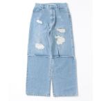 「Ray BEAMS」 ダメージ加工デニムパンツ 1 ブルー レディース