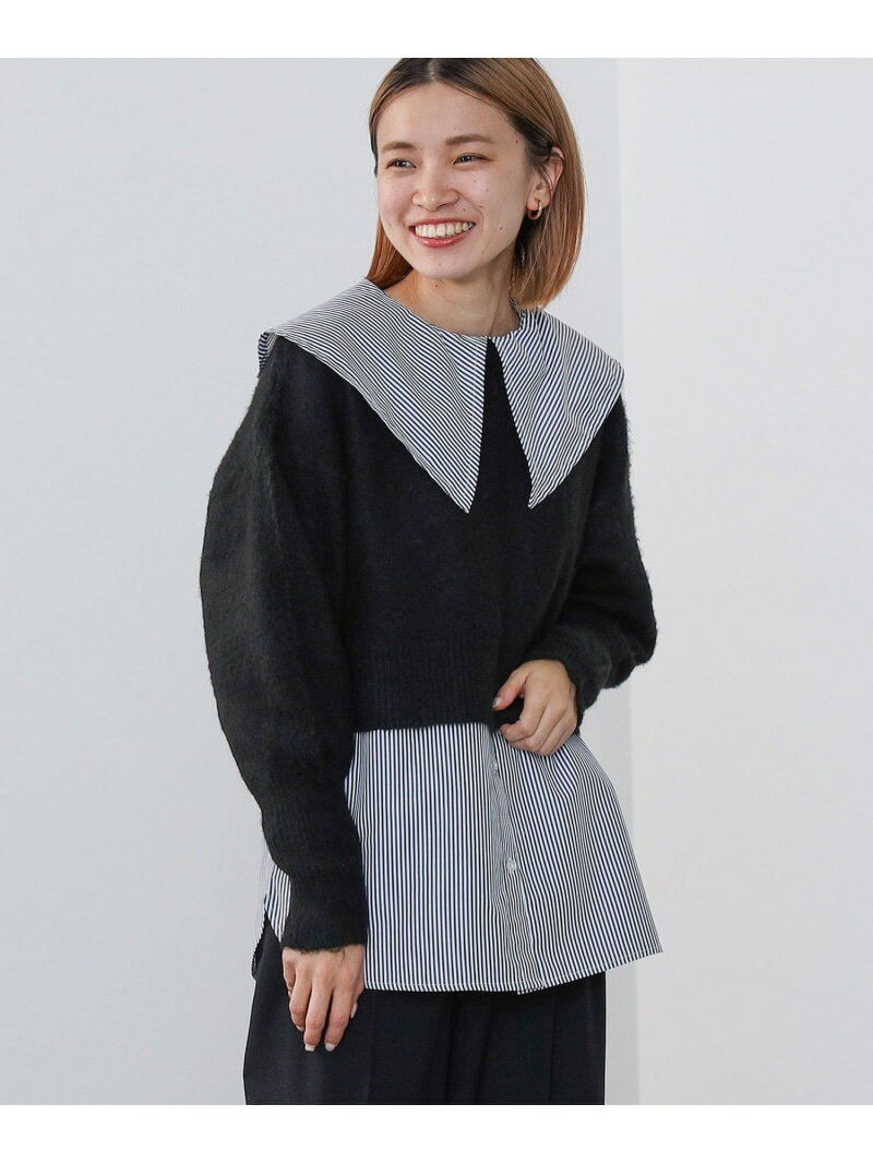 【SALE/70%OFF】ビッグカラーシャツセット ニットプルオーバー BEAMS HEART WOMEN ビームス アウトレット トップス ニット ブラック【RBA_E】[Rakuten Fashion]