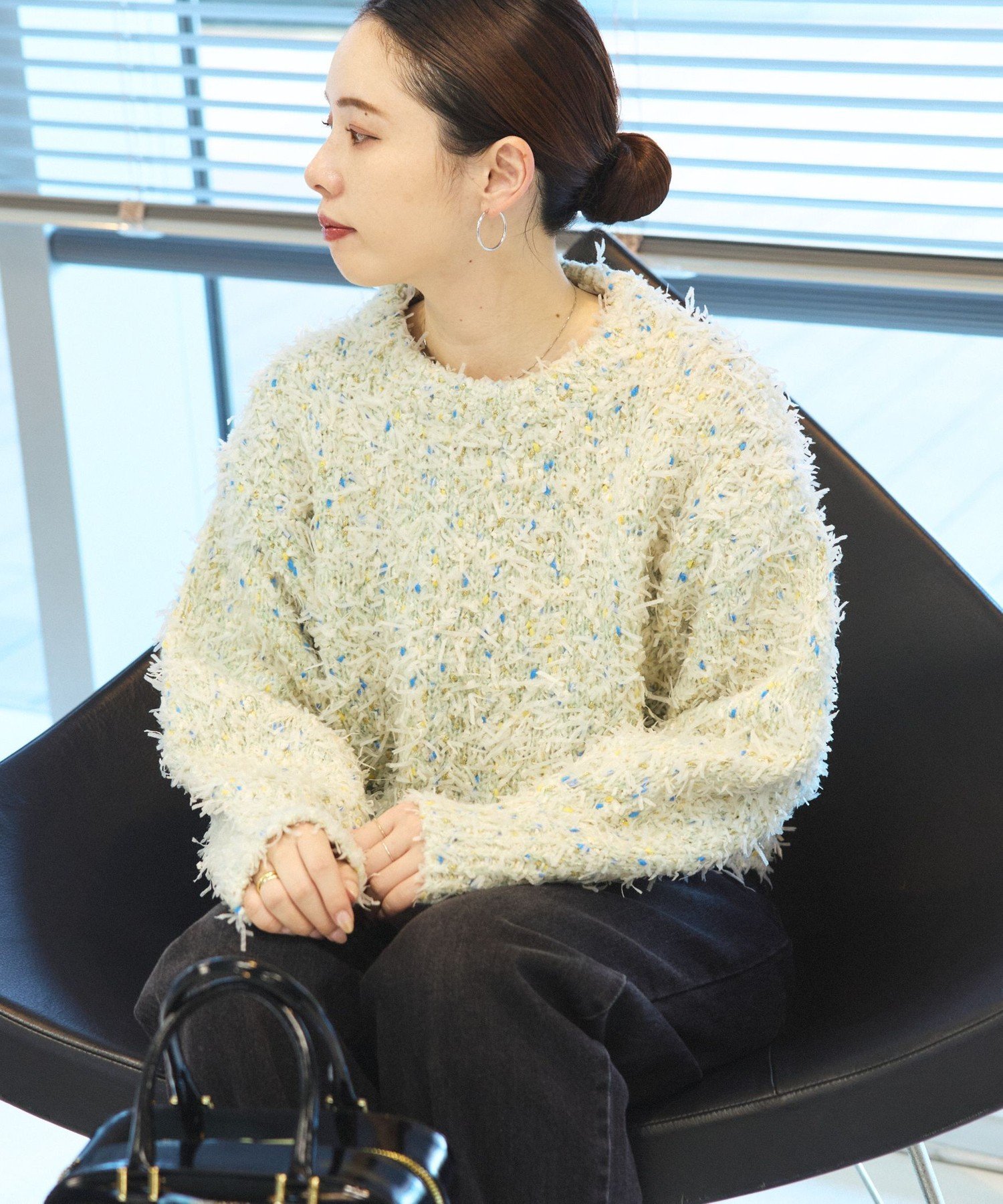 【SALE/30%OFF】Ray BEAMS 【9/25新規値下げ】シャギー メッシュ ポロ カーディガン ビームス ウイメン トップス ニット ホワイト ピンク【送料無料】