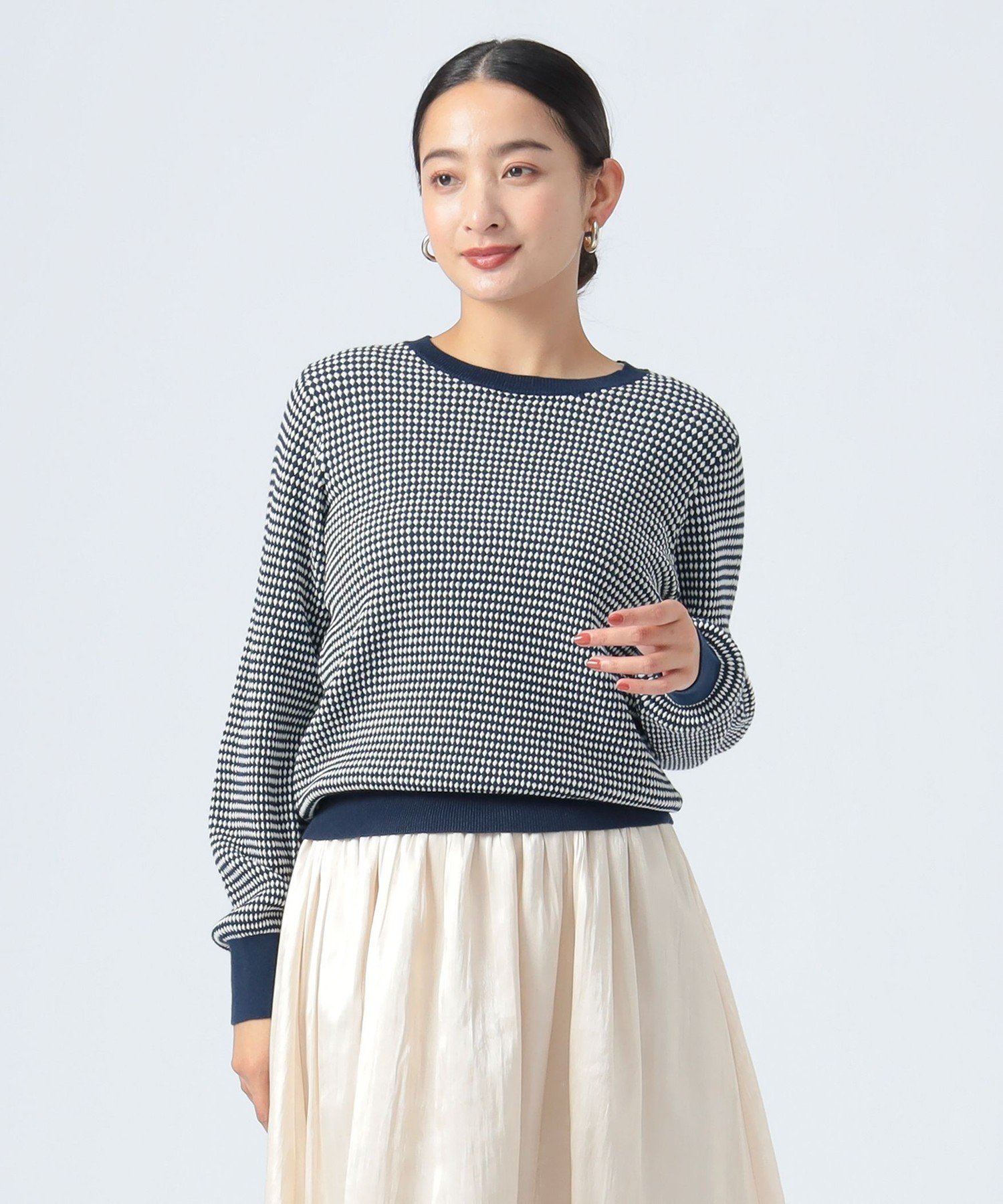 【SALE/40%OFF】BEAMS HEART WOMEN 【秋まで使える】【手洗い可】カラフル チェック ニット 25AW クルーネック 半袖 秋色 ビームス ハート トップス ニット ネイビー