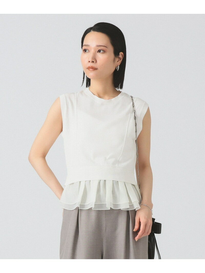 【SALE/30%OFF】Ray BEAMS 【9/25新規値下げ】【手洗いOK/秋まで着れる/レイヤード】シアー ペプラム クルーネック ノースリーブ ニット ビームス ウイメン トップス ニット ホワイト ブラック【送料無料】
