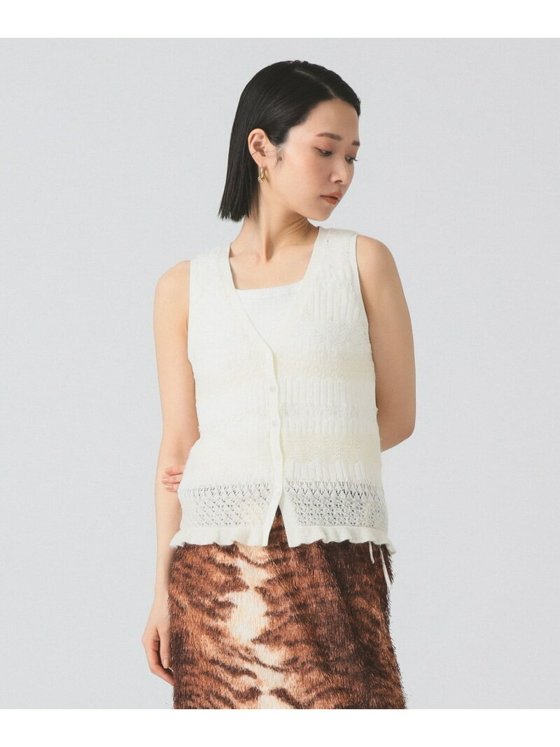 【SALE/30%OFF】Ray BEAMS 【9/25新規値下げ】【レース/レイヤード/重ね着/25AW】ボーダー レース編み ベスト ビームス ウイメン トップス ニット レッド ホワイト【送料無料】