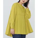 tシャツ ピンタックスリーブ 異素材プルオーバー レディース