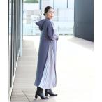 ワンピース 「定番人気」サイド プリーツ フーディー ワンピース