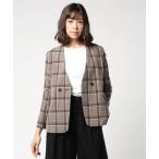 「BEAMS HEART」 チェック柄ノーカラージャケット S ブラウン レディース