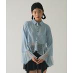 ブラウス シャツ レース キリカエ フレア スリーブ シャツ レディース