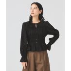 ブラウス シャツ シャーリング リボン クルーネック ブラウス レディース