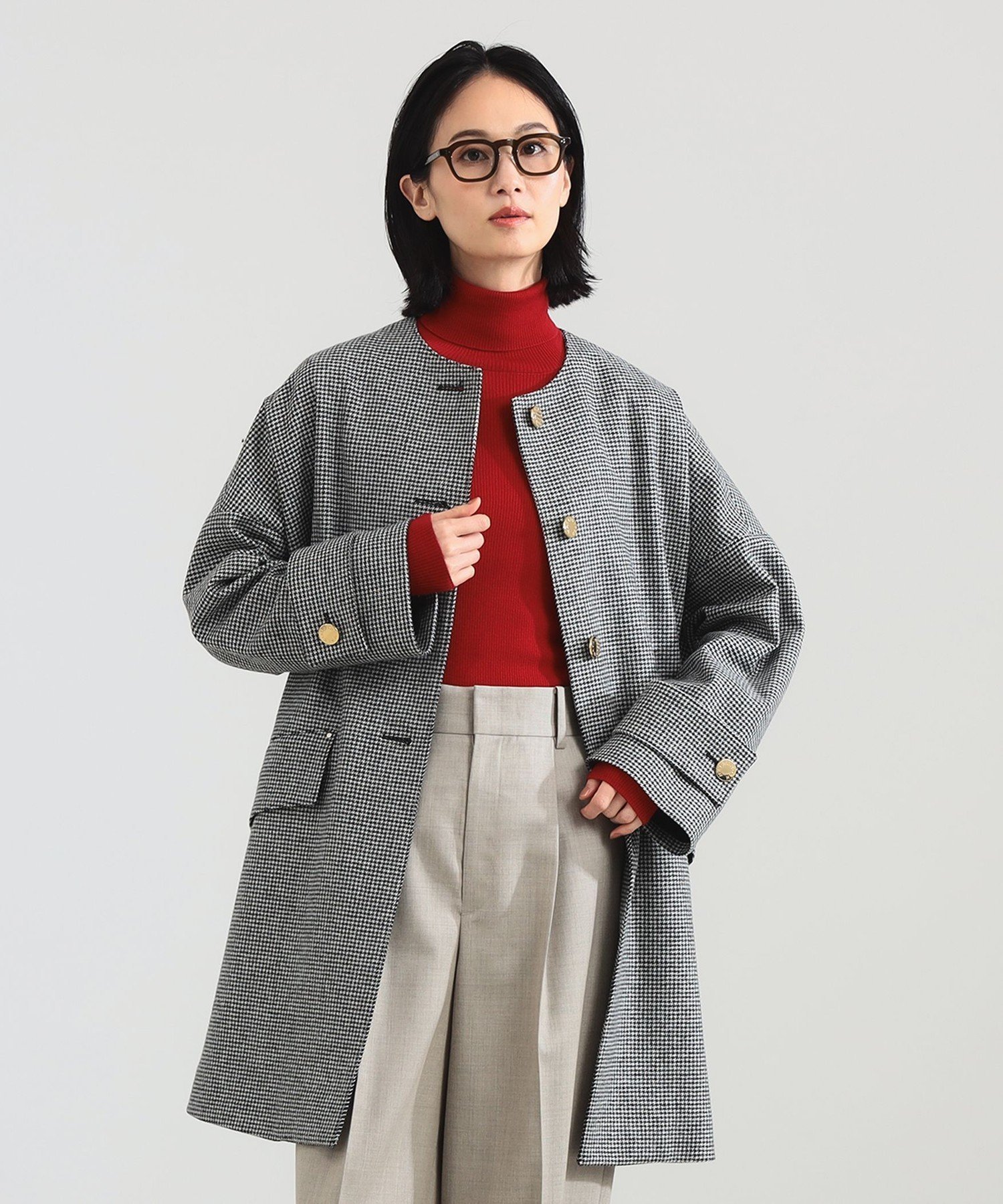 Demi-Luxe BEAMS MACKINTOSH / HUMBIE ノーカラー 千鳥 コート デミルクス ビームス ジャケット・アウター その他のジャケット・アウター ブラック【送料無料】