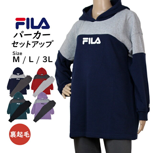 FILA レディース パーカー上下 セットアップ 裏起毛 パーカー スウェットパンツ 上下セット ルームウェア あったか 部屋着 M L 3L