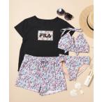水着 「FILA/フィラ」レディースロゴTシャツ付き水着4点セット 水陸両用 ラッシュガードTシャツ 総柄 バギーショーツ ビキニ(水着) レディース