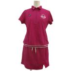 フィラ FILA ゴルフ GOLF ゴルフウェア ワンピース 半袖 ひざ丈 ハーフジップ 総柄 ロゴ 刺繍 M ピンク /XZ ■ECC002 レディース