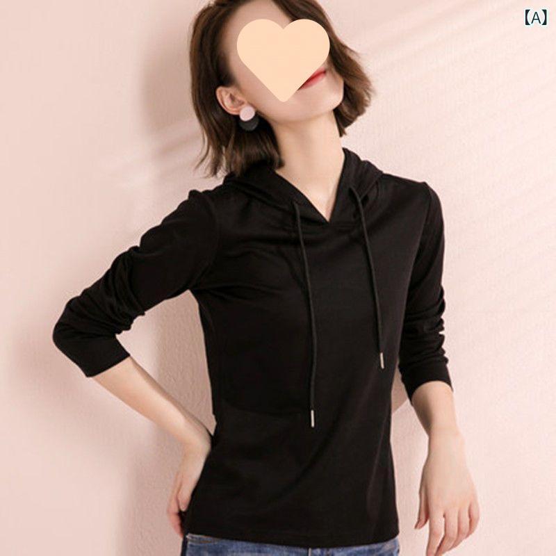 トップス レディース 長袖 フード付き パーカー トレーナー 無地 春夏 普段使い 伸縮性 綿素材 ブラック系