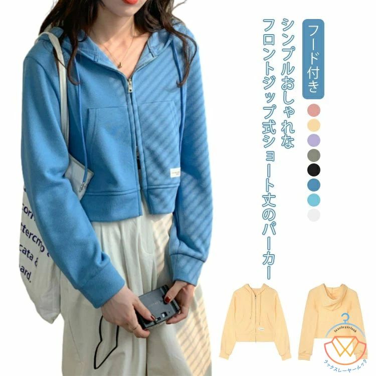 無地 ジップパーカー パーカー レディース ショート丈 ジップア