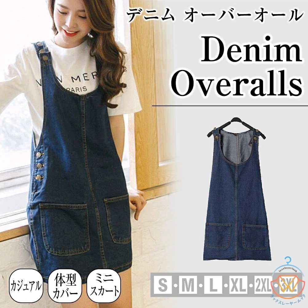 S-4XL 吊りスカート サロペット デニムワンピース ポケット付き