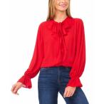 セセ カットソー トップス レディース Women's Long Sleeve Button-Down Ruffle Top Luminous Red