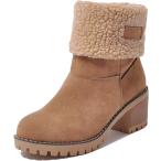 【並行輸入品】SO SIMPOK レディース スリッポン 暖かいアンクルブーツ ブロックヒール ウィンターブーツ カーキ 7.5