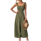【並行輸入品】CUPSHE Women's Square Neck Smocked Ruffled Romper Sleeveless Wid