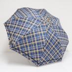 傘 Ralph Lauren ラルフローレン USED美品 レディース チェック ブルー ロゴ スカラップ刺繍 竹手元 60cm S3017