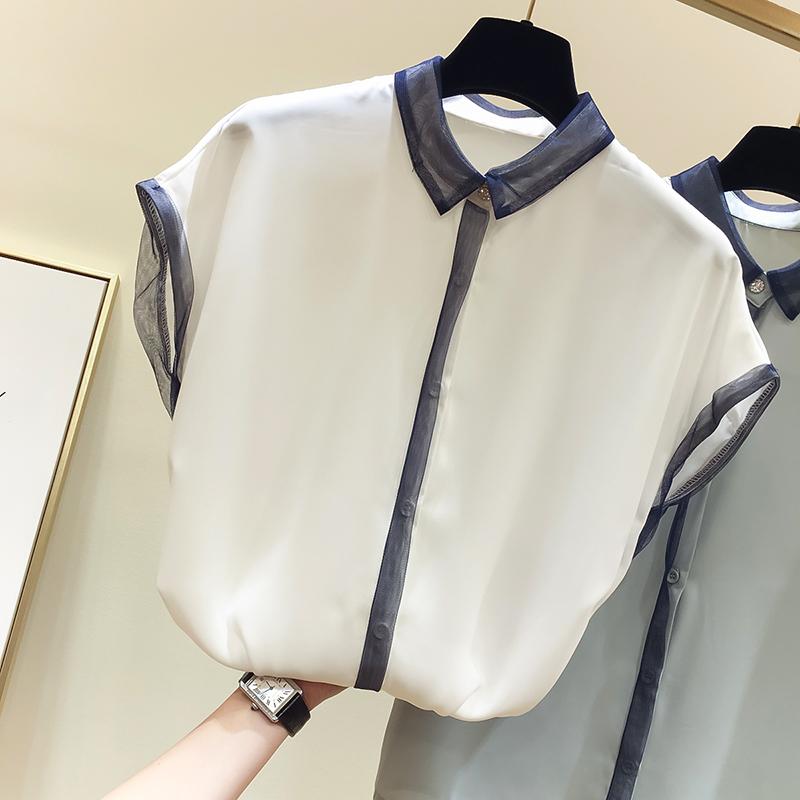 レディース ファッション 服 オシャレ カワイイ シンプル 大人カワイイ 大きいサイズ 秋 メッシュ カラーマッチング 西洋 半袖 シフォン シャツ