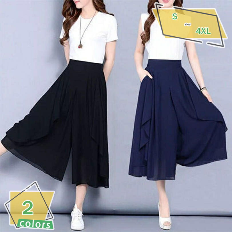 ハイウエスト ワイドパンツ レディース スカーチョ ゆったり ガウチョ パンツ 夏 大きいサイズ ふんわり 涼しい ウエストゴム シフォン裏地あり 2枚重ね ガウチョパンツ 七分丈 ギャザー レイヤード 薄手 夏春秋 おしゃれ かわいい RaogtCYU