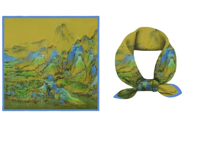 スカーフ レディース 古風 レトロ 江山図 飘带 ヘアバンド 正方形 ストール 秋冬 防寒 おしゃれ かわいい