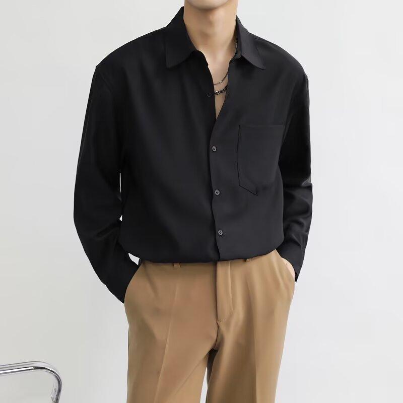 シャツ メンズ 男性用 長袖 ポリエステル ビジネス フォーマル トップス 無地 春秋 白 黒 通勤用
